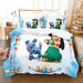 This Disney Lilo Stitch Bedding Set is made of high-quality polyester microfiber, ensuring comfort and breathability. It includes a duvet cover and two pillowcases, availabe in a range of sizes for single, double, twin, full, queen, and king beds. The vibrant colors and delightful design make it the perfect gift for any boy or girl.