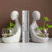 The vases feature a caring pose that embraces plants or candles, exuding modern serenity. With a warm light, these battery-operated vases elegantly illuminate the small glass bowls. They hold anything with grace and style, enhancing the overall aesthetic.